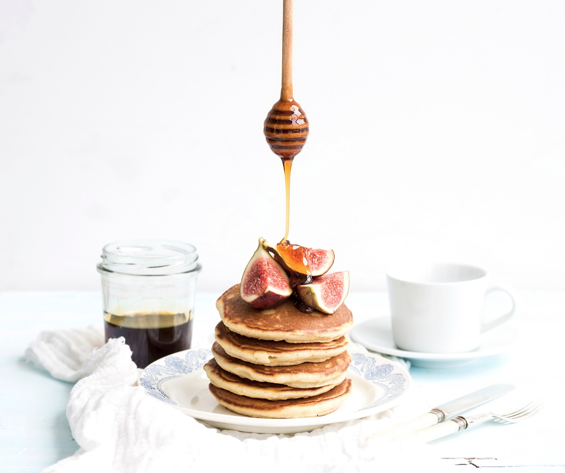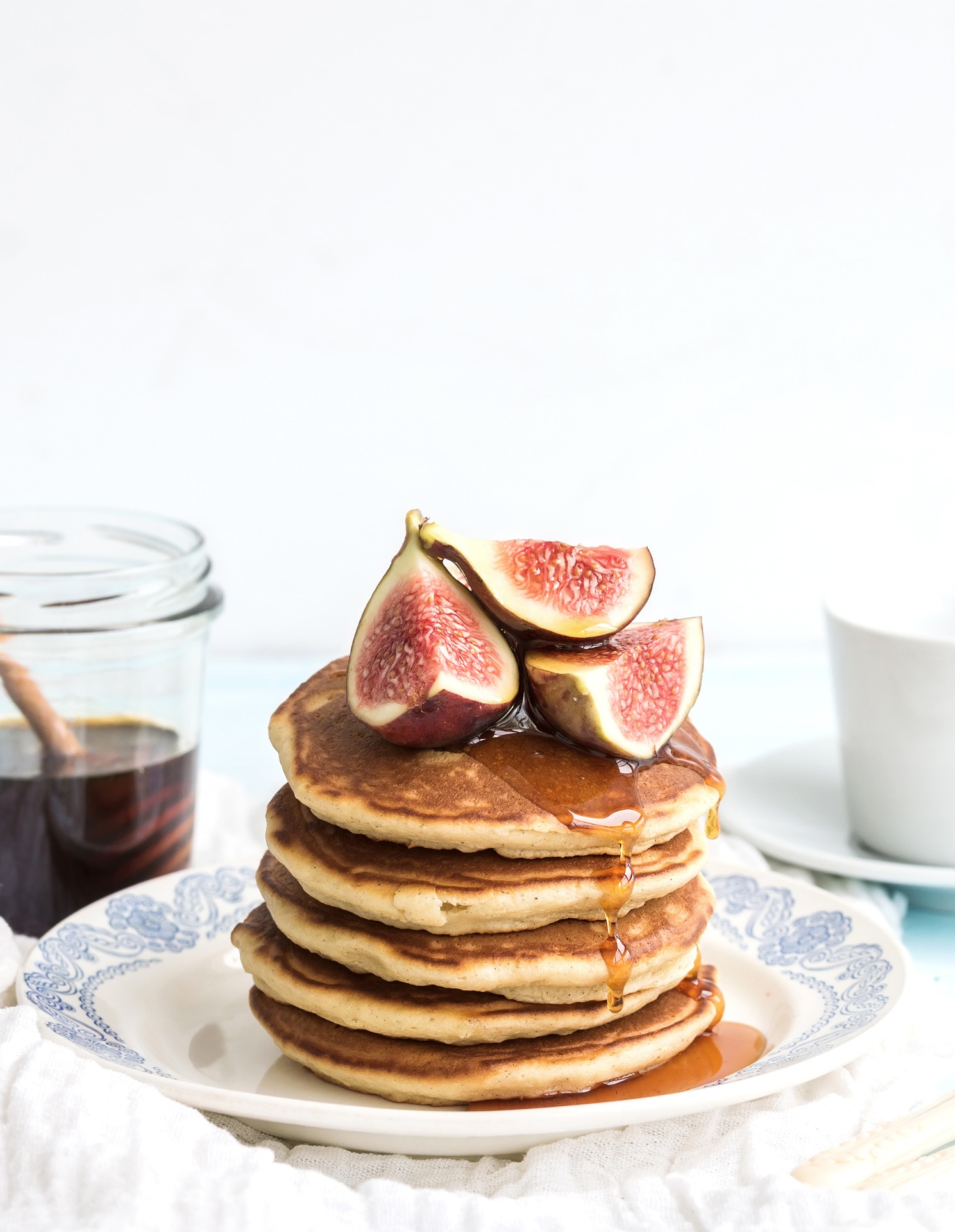 Fluffy pancakes are every cook's weekend dream. For breakfast or brunch, you'll have this batter ready in no time. There are so many things that you can use for garnish, but my family loves them the traditional way - with just maple syrup and fruits. We call the big stack the pancake cake and try to make it at least once each month.